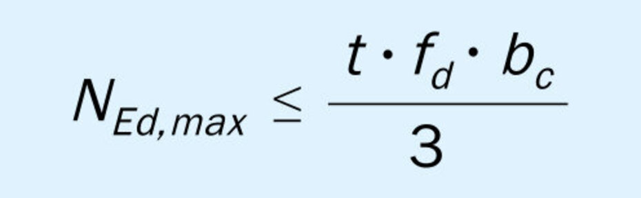 Des Weiteren ist die Tragfähigkeit gegen maximale Normalkraftbeanspruchung in halber Wandhöhe NEd,max bei einer Lastexzentrizität von e = t / 3 nachzuweisen: