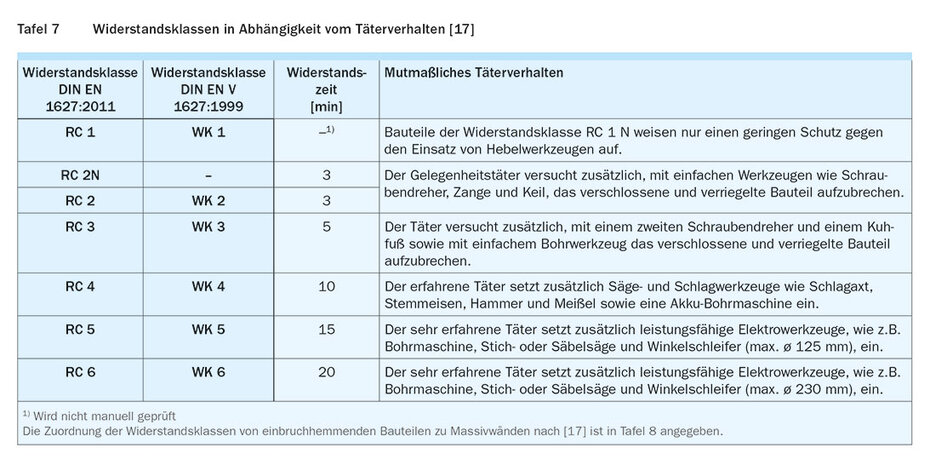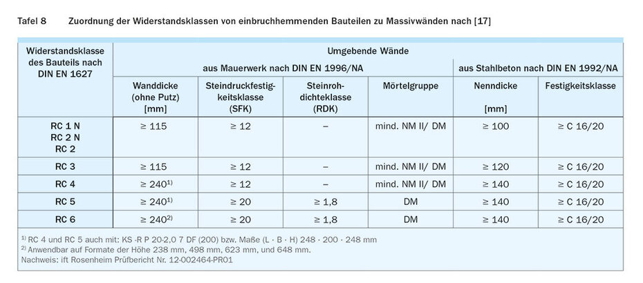 Anforderungen an die umgebenden Wände einbruchhemmender Bauteile wie Fenster, Türen und Abschlüsse (sowie das zu erwartende Täterverhalten) sind in DIN EN 1627:2011-09 beschrieben.